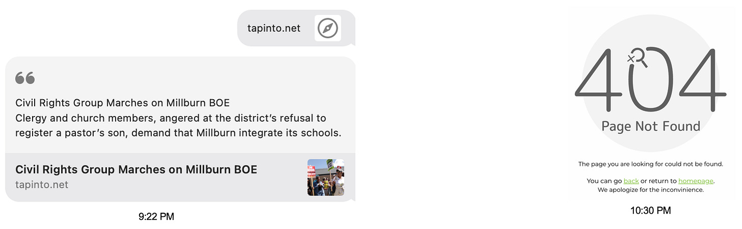 This article was first published by the online local news publication TAPinto on Friday, August 29, at 9:22 PM ET; an hour later it had been removed with no explanation.